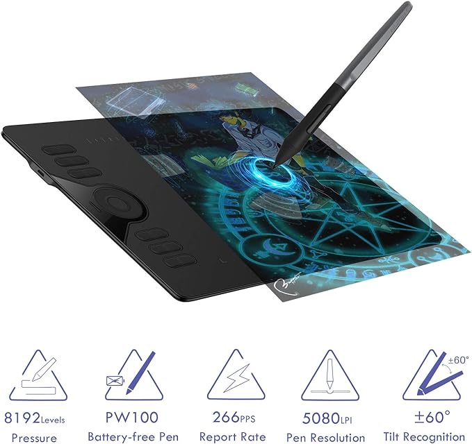 | Model: | HS610 Graphics Drawing 10 x 6 Inch with Touch Ring 60 Tilt Function Compatible with Mac Windows Android Ideal for Work from Home Remote Learning |
